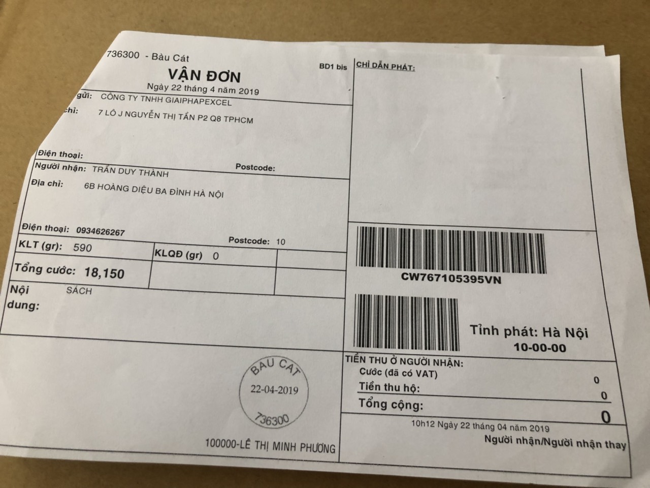 Mình đã chuyển khoản rồi. Nhờ GPE kiểm tra giúp. Địa chỉ nhận sách: 304A Quang Trung phường 11 Quận Gò Vấp, TP.HCM. Xin cám ơn