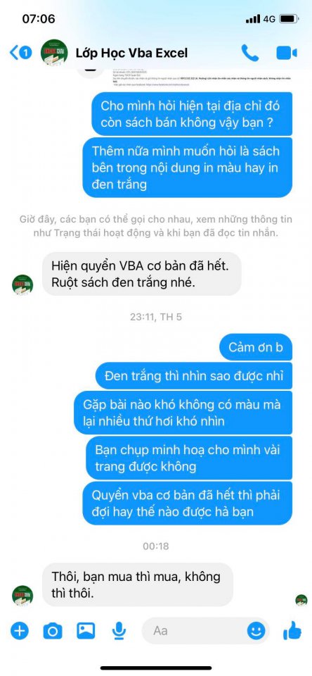 Tin nhắn đó đúng là mình chat với đại lý ở Hà Nội. Hơn nữa sau đó còn gửi thắc mắc đến page chính [Giaiphapexcel.com].